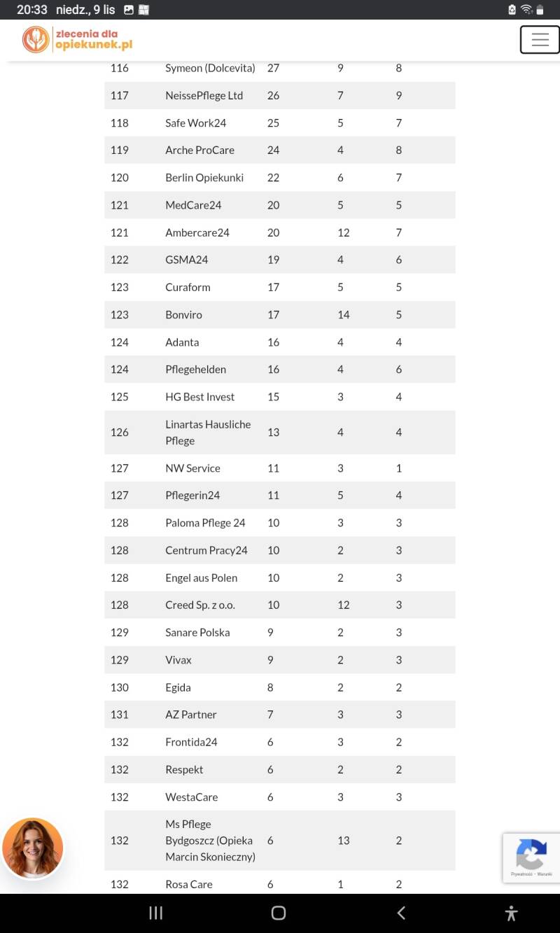 Wśród najlepszych agencji opiekuńczych, które wysyłają polskie opiekunki do pracy na teren Niemiec, nie ma firmy 1A Medicas 24, obecnie Mamma Mia. Owa firma, która ma liczne procesy w Warszawie, uplasowała się na tak dalekim miejscu, że w rzeczywistości nie istnieje. I dobrze, że skrzywdzone osoby pokazały firmie 1A Medicas 24 czerwoną kartkę. Teraz pora na jej następczynię, firmę Mamma Mia. Wierchuszka decyzyjna myśli, że opiekunki się nie zorientują. To pobożne życzenie. Tym bardziej, że popularność strony "Opiekunki w Niemczech" z każdym dniem rośnie. Od 30 października odwiedziło nas ponad 500 osób z Niemiec i Polski, co dało łączną liczbę odsłon ponad 2000! Dziękujemy i działamy dalej!