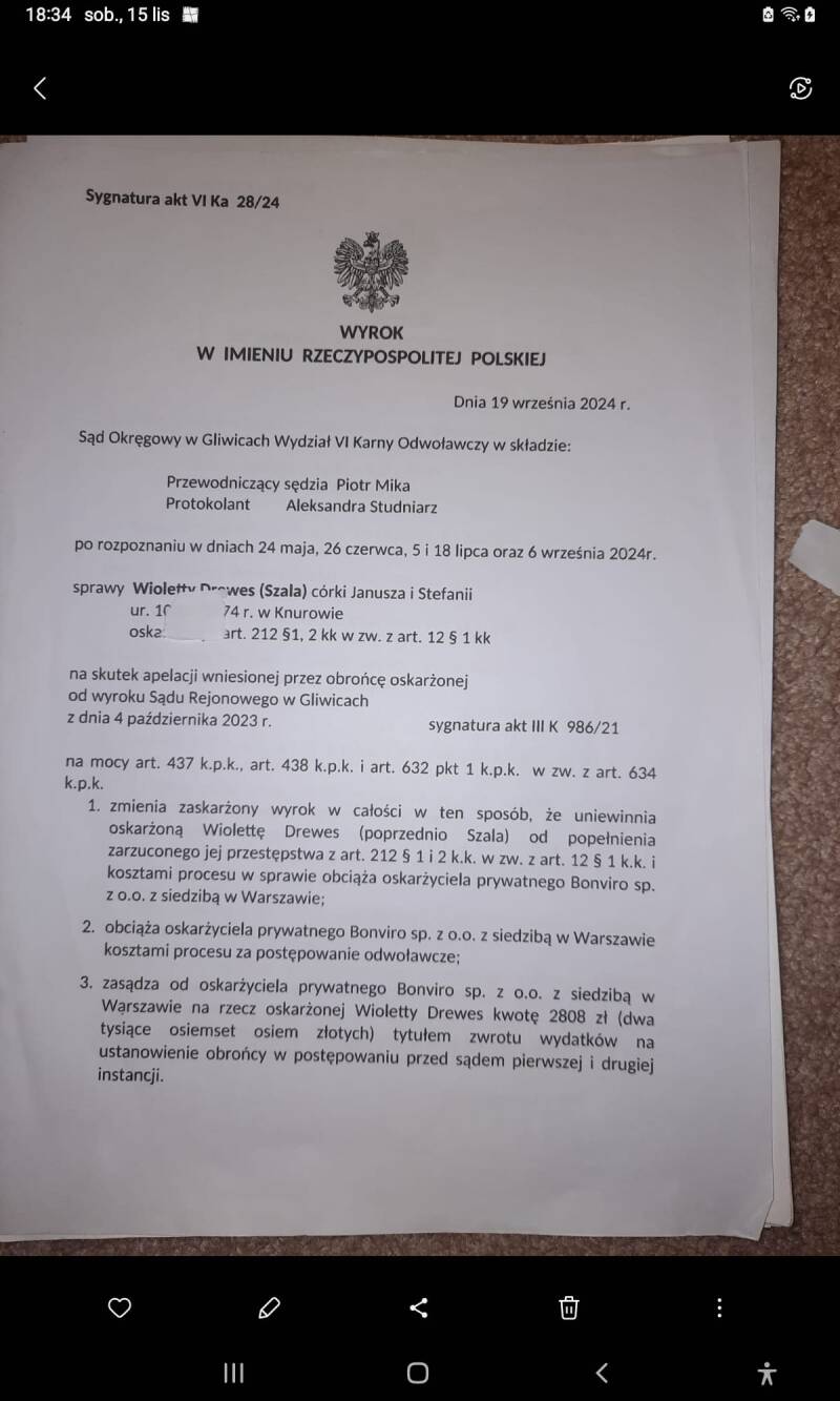Prezes spółki nie chciała rozmawiać z reporterką Uwagi! Sąd drugiej instancji uniewinnił panią Wiolettę od stawianych jej zarzutów. W całości.