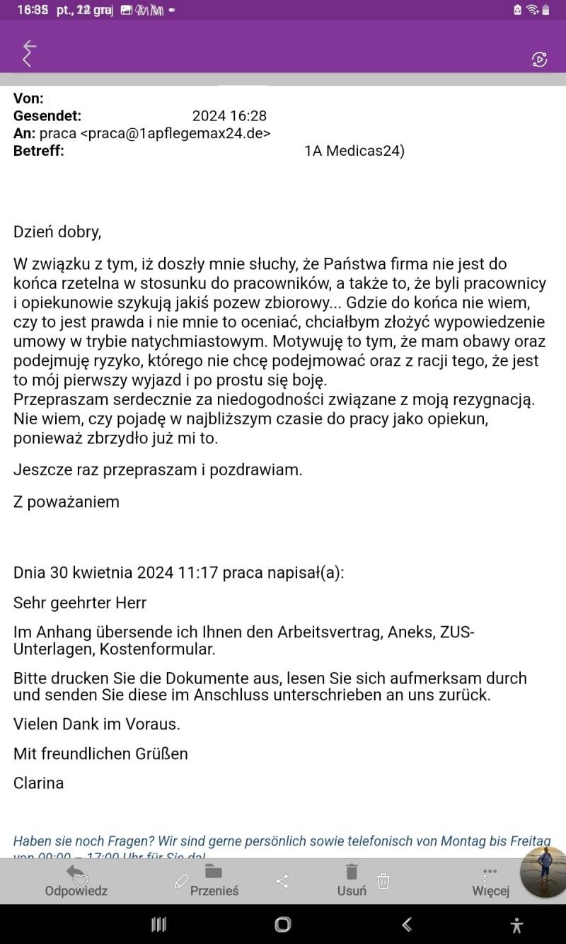 Cóż takiego uczynił Patryk K., wspomniany opiekun? Oto, co napisał do firmy.