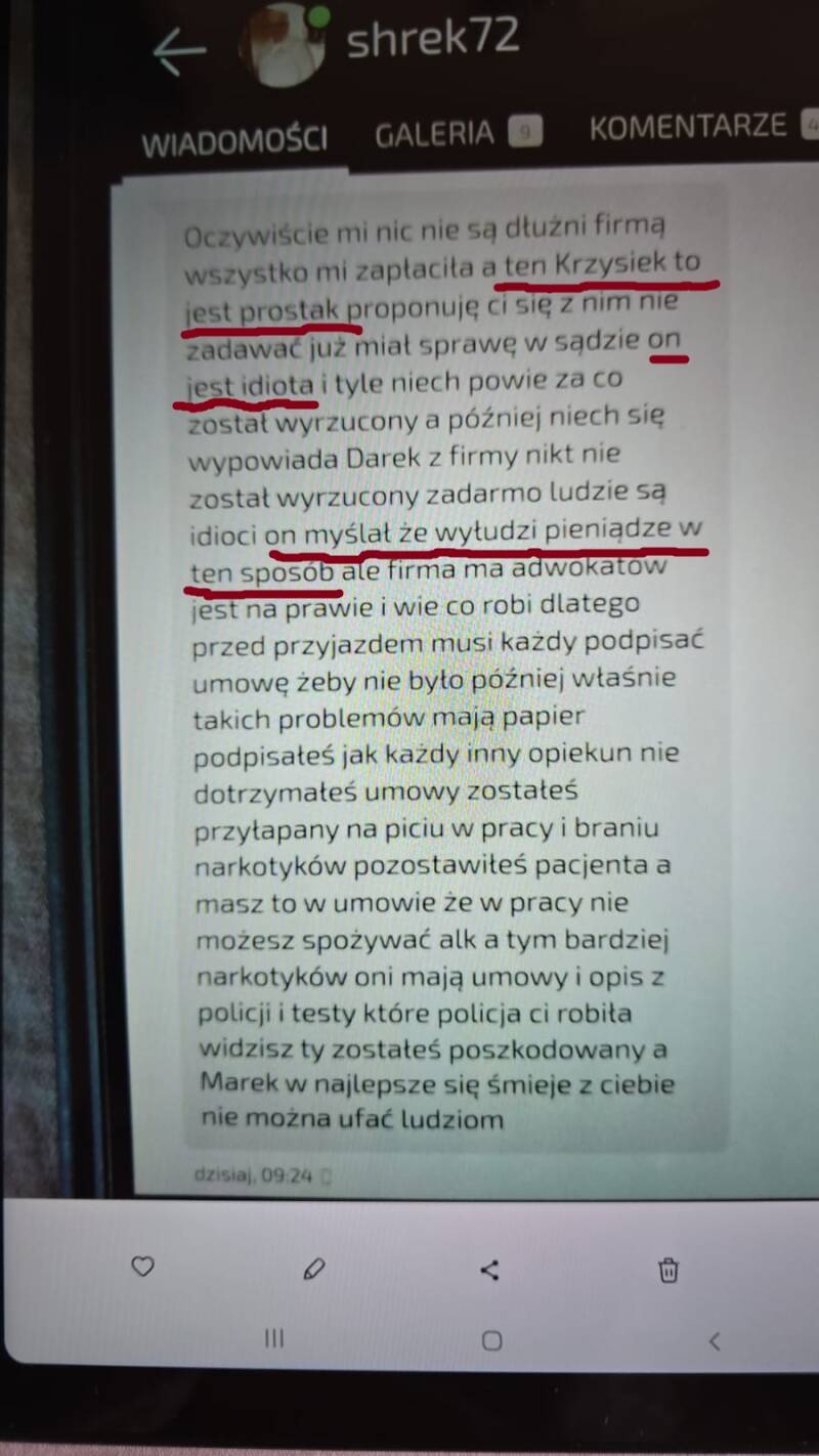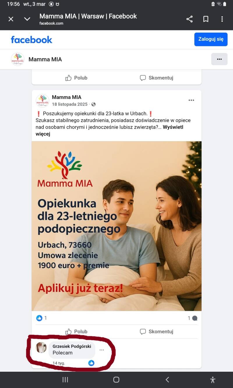 Agencja opiekunek Mamma MIA (dawna 1A Medicas 24) ma wiele negatywnych opinii wśród opiekunek i opiekunów. Ludzie zarzucają tej firmie wiele, zbyt dużo, o czym informują się i innych. Poniżej dowody. Dziś jednak nie o tym, a o pewnym mechanizmie socjotechnicznym. Jak zachęcić innych do siebie? Jak przekonać, że nas lubią i wielu chce u nas pracować? Skoro tłumy się nie ustawiają, trzeba wymyślić jakiś wabik. Jest nim "sztuczny tłum", tak więc jak grzyby po deszczu pojawiają się ci, co popierają i zachęcają. "Lajkują" na rzecz firmy, czasem coś napiszą. Zdarza się, że rozmawiają na prywatnych portalach dla... gejów. Nie, nie jestem żadnym fobem, chodzi o to, że KŁAMIĄ. Nie znają człowieka, a oczerniają go, wypowiadając się na tematy, o których nie mają bladego pojęcia. Poniżej dowód w postaci raportu pokontrolnego Państwowej Inspekcji Pracy. Szkopuł w tym, że to sami pracownicy Mamma MIA (dawna 1A Medicas 24) lub pracownicy 1A Pflegemax 24, czyli firmy, dla której de facto pracują opiekunki i opiekunowie z Polski. Poniżej dowody.