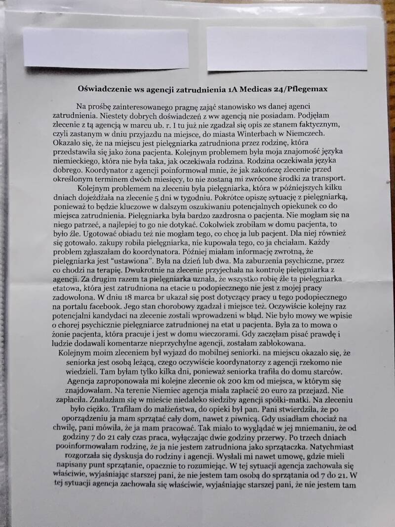 Nasza strona jest poświęcona trzem konkretnym firmom (1A Medicas 24, Mamma Mia, 1A Pflegemax 24), zanim jednak były dwie z wymienionych jako pierwsze, na rynku działała agencja Medicas, o której też wspomnimy. A teraz dość pisania, oddajmy głos skrzywdzonym opiekunkom.