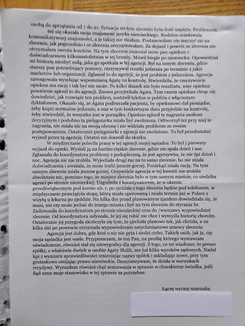 Jest wiele for, na których opiekunki wyrażają swoje opinie na temat agencji, które - zdaniem pracownic opieki senioralnej - są nieuczciwe. Jednak żadna platforma dyskusyjna nie publikuje tylu dokumentów, co portal "Opiekunki w Niemczech". To nas wyróżnia na tle innych, świadcząc tym samym o fachowym podejściu do tematu tzw. patoopieki w Polsce i w Niemczech.
